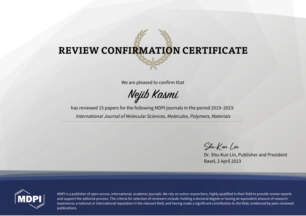 > Polymers MDPI (link), Q1 – International Journal of Molecular Sciences MDPI (link), Q1 – Materials MDPI (link), Q2 – Molecules MDPI (link) Q2